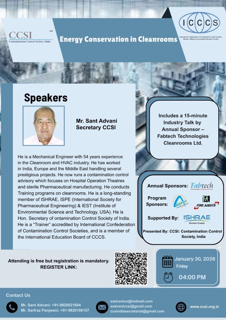 We are pleased to invite you to a webinar on “Energy Conservation in Cleanrooms”.